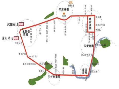 环路是沈阳历史最为悠久的经典黄金路线,是沈阳唯一环线,途经区域均为沈阳最繁华地段。该线以南站周边为起止,环城经过三好街、辽宁电视台、展览馆、五爱街、中街、太原街等地带。汇集全市政治、经济、文化、娱乐、居住各中心地段。具有运营时间长、发车间隔短、客流量多、沿线繁华的特点,是实力商家的首选广告线路。